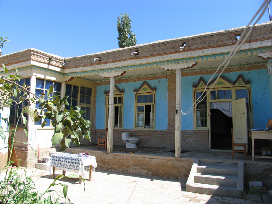 土房的墻一般都很厚,里面粉刷石灰,有的還掛壁毯。墻壁多用石灰刷成淡藍(lán)色,安雙層玻璃窗,內(nèi)層為活動(dòng)式,夏天可以取下,窗外有木屜子,起保護(hù)作用。窗戶上還開有小孔,以便通風(fēng)。房內(nèi)的地面為水泥或磚面。室內(nèi)除有的搭火炕外,其它的裝飾和木房的一樣。不論哪個(gè)房間,都可作為臥室,也用于待客,廚房和儲(chǔ)藏室單建,有的還單建馕坑。