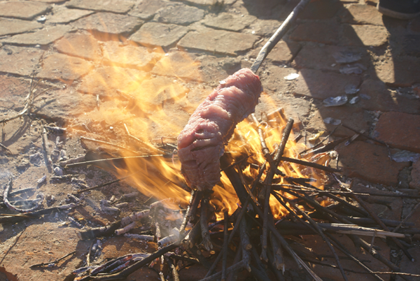 曬肉干,赫哲語(yǔ)叫“胡烈克特”。通常用鹿、狍、野豬、熊等獸肉制作肉干。把動(dòng)物的皮剝?nèi)ヒ院?,將四肢和里脊部位的肉取下?lái)切成小塊,用木棍串上烤熟,然后切成小塊,曬干后儲(chǔ)存起來(lái)。曬肉干可以當(dāng)干糧吃,也可以用開(kāi)水浸泡后燉著吃。
