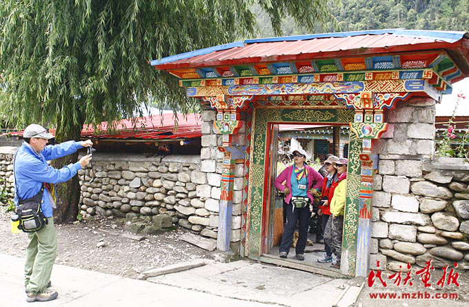 在珞巴族家門前留影紀(jì)念的游客絡(luò)繹不絕(列來拉杜 攝影)