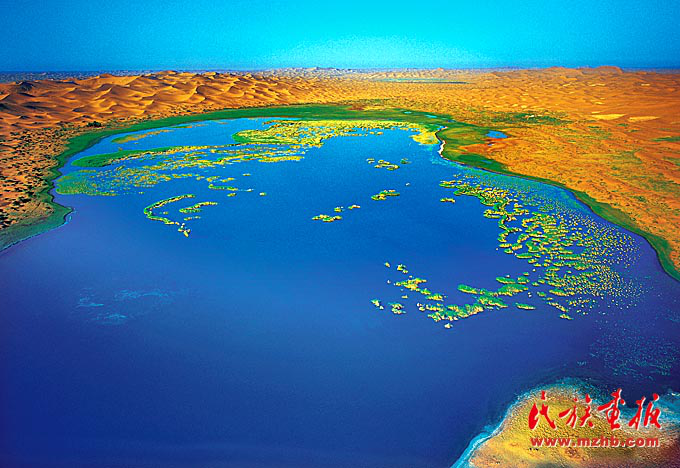 位于阿拉善左旗騰格里沙漠腹地的月亮湖,是沙漠深度旅游體驗(yàn)地之一。