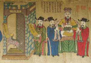 與畬族有關(guān)的圖畫(huà)主要包括清朝乾隆年間皇家繪制的《皇清職貢圖》,畫(huà)內(nèi)有相關(guān)的畬族資料和家族祖圖。今藏的祖圖多為清代物品,以麻布、土布為底,平圖勾勒,濃墨重彩,以條狀橫幅長(zhǎng)卷居多,也有直幅多屏組合而成的。畫(huà)面配有文字說(shuō)明,圖文并茂,展示了畬族的歷史發(fā)展、社會(huì)生產(chǎn)、文化習(xí)俗等。畬民家族祖圖分布范圍較廣,主要在福建、浙江、廣東等省。