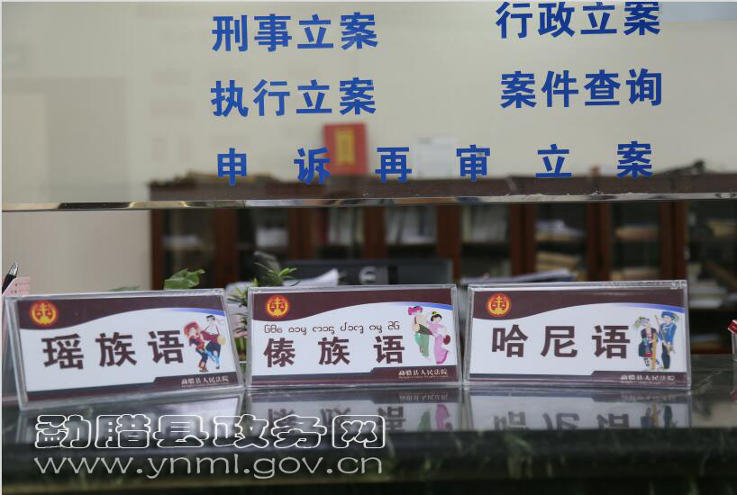 民族特色服務(wù)型訴訟服務(wù)中心,是云南省高級人民法院《人民法院訴訟服務(wù)中心升級版建設(shè)三年規(guī)劃》中提出的“五類型”訴訟服務(wù)中心之一。勐臘縣位于祖國西南邊陲,東、南被老撾國半包,西南隅與緬甸國隔瀾滄江相望,轄區(qū)內(nèi)有26個少數(shù)民族繁衍生息,主要少數(shù)民族有傣族、哈尼族、瑤族、彝族,其中人數(shù)以傣族居多。結(jié)合訴訟服務(wù)中心中心建設(shè)規(guī)劃、勐臘轄區(qū)少數(shù)民族眾多及中老邊民多使用民族語言溝通等特點,勐臘縣人民法院著力構(gòu)建民族特色服務(wù)型訴訟服務(wù)中心。2017年訴訟服務(wù)中心配備通曉本民族語言的傣族、哈尼族、瑤族干警各一名,設(shè)立民族特色服務(wù)崗。