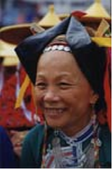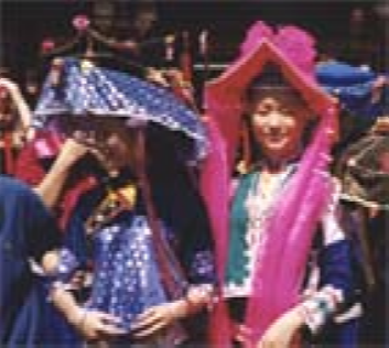 惠東女服飾文化源遠(yuǎn)流長,其形成、發(fā)展過程一直是中外人類學(xué)、民俗學(xué)專家關(guān)注的課題。其來源有種種傳說,目前尚無定論。據(jù)史料記載,清代中后期,惠東婦女上穿黑色或紫色長袖挖襟衫,下穿黑色大折褲。衣長、胸、腰背寬闊,下沿稍呈弧形外展,與清代流行的“大夫衫”(長式挖襟衫)類似。不同的是袖口偏窄,袖子接長,故名“接袖衫”又名“卷袖衫”接袖的用意十分有趣,為的是讓新娘入洞房時(shí)提起長袖以遮掩一臉羞紅;過了3日,才在長袖一半處翻卷逢住固定。到了清未“接袖衫”各部分略為收縮,衣沿弧度加長,臂圍寬度加闊并向外彎展,腰圍處的中式紐攀減少,兩個(gè)連在一起,袖口繞藍(lán)布邊。領(lǐng)圍上刺繡圖案由簡變繁,領(lǐng)根下方形色布改為三角形。胸、背中線兩側(cè)綴做兩塊方形黑色、深褐色綢布,其四邊各鑲接一塊三色形色布,改稱“綴做衫”。褲子為“大折褲”又名“大筒褲”,俗稱“漢裝褲”。褲一般用黑色布,也有用藍(lán)色的。褲腳寬約1.2尺,褲頭約2尺,縫一道5寸的藍(lán)色布邊。其樣式從清代中后期至今沒有多大變化,惟質(zhì)料由舊時(shí)用粗布,今天改為通用黑綢布?;輺|女服飾,歷來重視腰以上部分,特別以頭飾最為突出,花樣繁多,不同場合、不同年齡的頭飾有明顯區(qū)別。