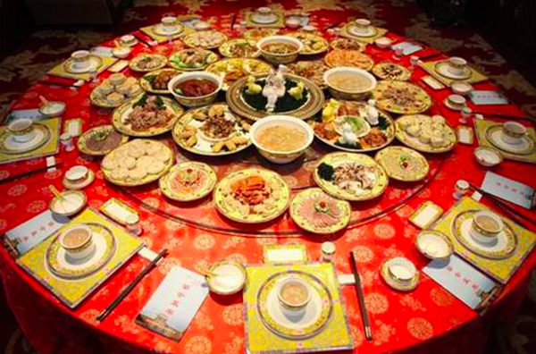 清真宴席全羊席是繼滿漢全席之后的宮廷大宴席之一,是清朝宮廷招待穆斯林客人的最高檔次宴席。全羊席是用整個羊的各個不同部位,烹制出各種不同品名、不同口味的菜肴。也就是說,從頭到尾,每一處都能做出一個菜。例如羊耳朵,可分上、中、下三段,三處可做出三樣不同的菜肴:羊耳尖可做“迎風(fēng)扇”,羊耳中段可做“雙風(fēng)翠”,羊耳根可做“龍門角”等等,品種五花八門,名稱各有千秋。而且從頭到尾,在所有的菜名中不露一個“羊”字,全以美麗、生動、形象的別名代之。全羊席的餐室很注重伊斯蘭特色,桌布要用藍(lán)色,還要用白布縫上“清真”二字。另外,清宮中的很多清真菜肴,現(xiàn)在仍為清真飯店保留,例如:桂花羊肉、蔥爆羊肉、芝麻里脊、炸牛排、鍋燒雞、鹽爆散丹等。還有一大批宮廷清真小吃在民間流傳,如涼糕、撒糕、切糕、甑兒糕、芙蓉糕、蜂糕等。