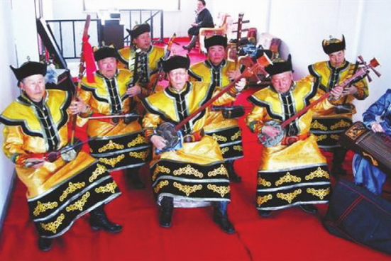 有阿斯?fàn)柟爬系膶m廷器樂合奏曲,流傳于原察哈爾地區(qū)。阿斯?fàn)栕钤鐬槊晒艑m廷宴樂,清朝后期開始流行于察哈爾民間,一般在祭祀敖包、祝壽、婚宴、小孩生日等活動上演奏。此外,還有馬頭琴、四胡演奏和好來寶蒙古族民間說唱藝術(shù)。