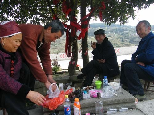 “子孫橋”落成儀式上,主人要給路人發(fā)紅蛋和敬酒勸肉