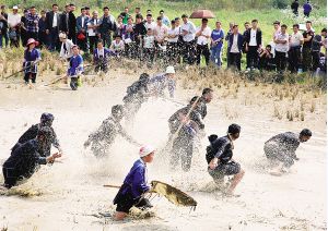 近日,貴州省黔東南苗族侗族自治州黎平縣龍額鎮(zhèn)龍額侗寨慶祝傳統(tǒng)節(jié)日“春社節(jié)”,當(dāng)?shù)丶爸苓叺貐^(qū)的少數(shù)民族同胞歡聚一堂,開展吃“社飯”、撈“社魚”等民俗活動,祈求風(fēng)調(diào)雨順。