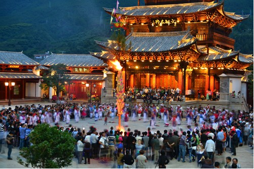 劍川的火把節(jié),還是增進(jìn)親友情誼的一個(gè)紅火節(jié)日。到燃燒著的火把樹下玩,烤著火把節(jié)的火,在火光中歡樂(lè)談笑,平時(shí)見面只打招呼的人喝酒碰杯,說(shuō)句貼心的話,情誼一下子就升華了。