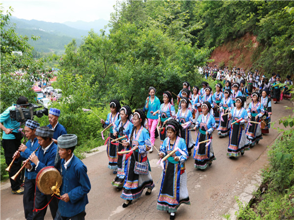 六嗩吶聲聲,鑼鼓齊鳴,各地布依同胞趕來(lái)參加六月六盛會(huì)。引自六盤水市紀(jì)委監(jiān)察局網(wǎng)站