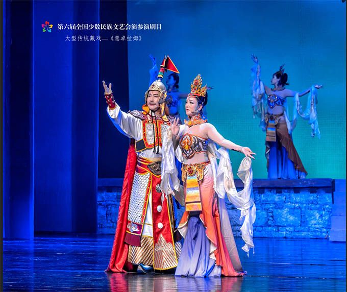 9月14日,作為第六屆全國少數(shù)民族文藝會演參演劇目,由青海省選送、青海省藏劇團(tuán)(黃南藏族自治州民族歌舞劇團(tuán))創(chuàng)作演出的藏戲《意卓拉姆》在央視網(wǎng)和國家民委門戶網(wǎng)站進(jìn)行演播。該劇講述了傳說中的仙女意卓拉姆與人間的諾桑王子相愛,歷經(jīng)挫折與磨難后終成眷屬的愛情故事,表現(xiàn)出意卓拉姆對愛情的忠貞不渝和諾桑王子堅韌不拔的意志。