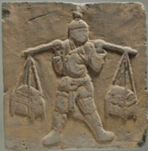 挑擔圖磚雕