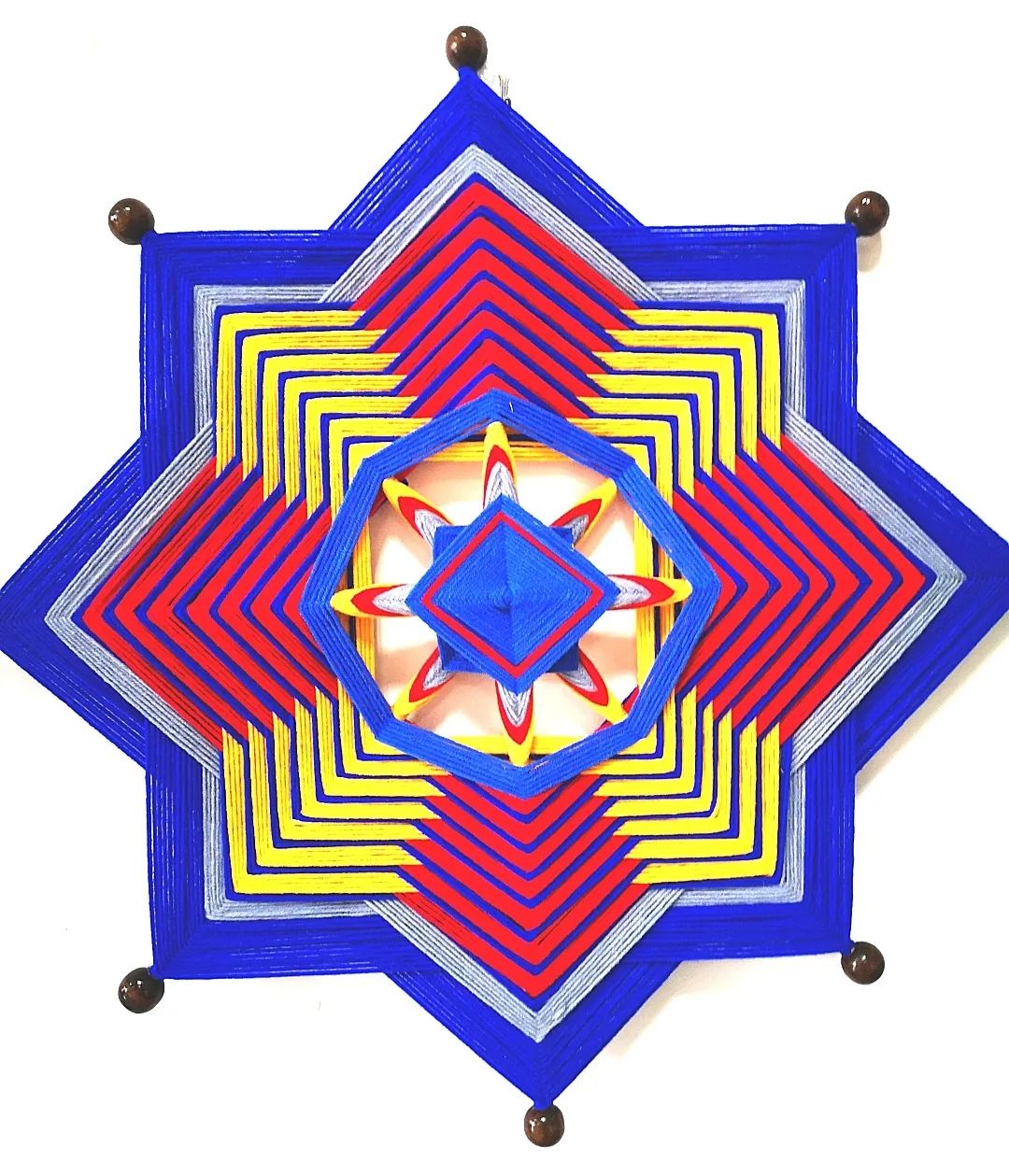 科爾沁繩編設(shè)計精巧,尤其擅長表現(xiàn)游牧民族生活之美, 具有地域民族風(fēng)情之美,繩結(jié)造型多為上下一致、左右對稱、正反相同、首尾銜接。一根彩繩通過綰、結(jié)、穿、纏、繞、編、抽等多種工藝技巧,按照章法循環(huán)有致、連綿不斷編制而成。近代由于蒙漢文化的融合,繩編技法也開始相通了。