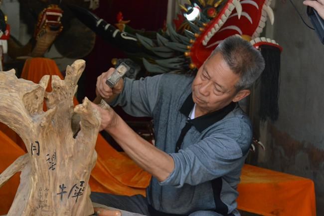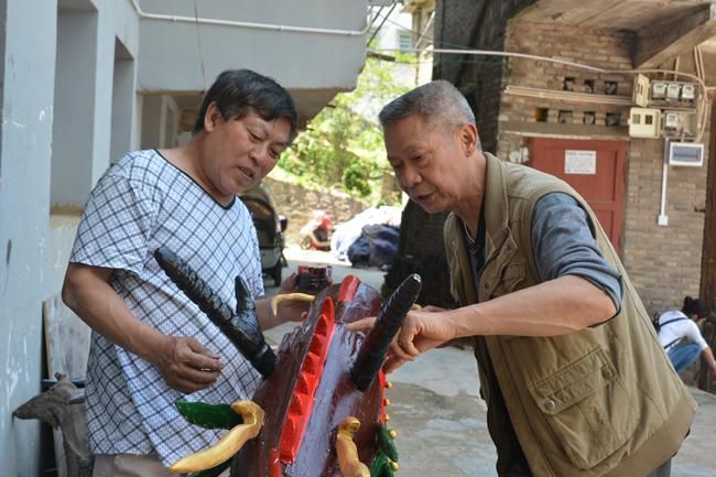 家住鎮(zhèn)遠(yuǎn)縣?陽(yáng)鎮(zhèn)東關(guān)社區(qū)的皇安東,今年68歲,雖然年近古稀,但精氣神堪比五十來(lái)歲的中年人,皇安東介紹由于個(gè)人愛(ài)好,8歲時(shí)與龍舟接下了深厚的情緣,對(duì)“龍”文化研究的執(zhí)著像一如往日對(duì)戀愛(ài)的投入充滿激情和憧憬一樣,經(jīng)過(guò)60多年的龍舟文化研究探索,他手工雕刻的龍頭威武靈動(dòng)融匯鎮(zhèn)遠(yuǎn)傳統(tǒng)文化精髓,“鎮(zhèn)遠(yuǎn)賽龍舟”已被列為國(guó)家非物質(zhì)文化遺產(chǎn)項(xiàng)目名錄?;拾矕|49歲開(kāi)始自學(xué)雕刻龍頭,鎮(zhèn)遠(yuǎn)端午節(jié)每年祭祀用的龍頭幾乎出自他手,雕刻的龍頭已上數(shù)百頭。當(dāng)筆者提到皇安東為何歷經(jīng)六十多年對(duì)雕龍頭的“手藝”癡心不改時(shí),他笑著爽朗地說(shuō):“我一生雕龍頭,主要的精神動(dòng)力是對(duì)鎮(zhèn)遠(yuǎn)傳統(tǒng)龍舟文化的熱愛(ài)和傳承。”皇安東一家人整天在“龍”的藝術(shù)空間里過(guò)得有滋有味。