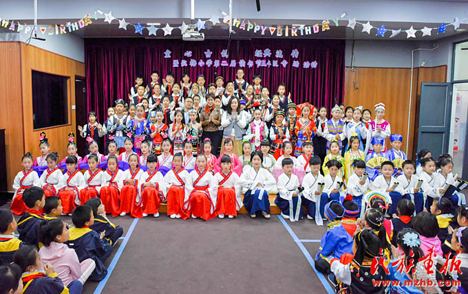 同一天下午,一場精彩的T臺秀在上海市閔行區(qū)梅隴鎮(zhèn)弘梅小學上演。小學生們身著民族服裝亮相,動感的音樂、精彩的表演,將“民族團結一家親”的理念演繹得生動活潑。學校布置的民族文化墻上,展示了我國56個民族的風土人情,營造了多姿多彩的民族文化氛圍,讓民族特色文化陪伴在學生身邊。