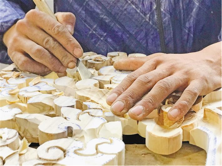 經(jīng)拉巴次仁之手刻出的作品干凈利落,不多一分也沒少一處,極大地表現(xiàn)出木雕藝術(shù)的魅力和風(fēng)格。然而,要完成一件長約50厘米、寬約15厘米的建筑裝飾品,就需要花費(fèi)一天半的功夫。