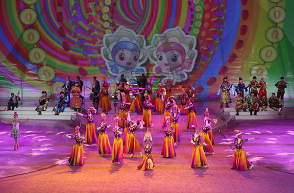2016年1月20日,為期11天的第十三屆全國冬季運(yùn)動(dòng)會(huì)在烏魯木齊冰上運(yùn)動(dòng)中心速滑館拉開大幕。開幕式由體育儀式、文體表演和點(diǎn)燃主火炬塔三個(gè)部分組成。在文體表演章節(jié),承擔(dān)本次開幕式文體表演與伴舞任務(wù)的新疆藝術(shù)學(xué)院200名學(xué)生與來自新疆各民族的文藝工作者一起,為觀眾獻(xiàn)上了一臺(tái)精心策劃和編排、以“冰雪天山陽光絲路”為主題的精彩表演。參加開幕式文體表演的舞蹈系2014級(jí)、2015級(jí)學(xué)生,大部分是第一次參加國家級(jí)的大型活動(dòng),他們克服嚴(yán)寒,用自己的實(shí)際行動(dòng)為精彩冬運(yùn)會(huì)助力添彩