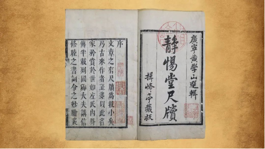 呼和浩特市圖書館藏《靜惕堂尺牘》八卷,清曹溶撰 ,清黃汝銓選,清康熙三十九年(1700)黃汝銓揖峰亭刻本。四冊一函。版框高十七點八厘米,寬十二點三厘米。半葉九行行十九字,左右雙邊,粗黑口,單黑魚尾,魚尾下鐫卷數(shù)、頁碼。牌記鐫“廣寧黃學山選輯/靜惕堂尺牘/揖峰亭藏版”。卷前首列清康熙三十九年(1700)黃汝銓序,次列陳箴序、目錄。內(nèi)封、序前、目錄前、卷端皆有鈐印,有“揖峰亭”“恭儉謙約”“安樂堂藏書記”“明善堂覽書畫印記”“居易堂”“深根寧極”“子重”“頌臣”等。