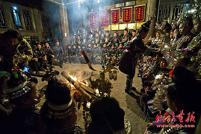 夜晚,侗寨鼓樓里的“音樂會”。