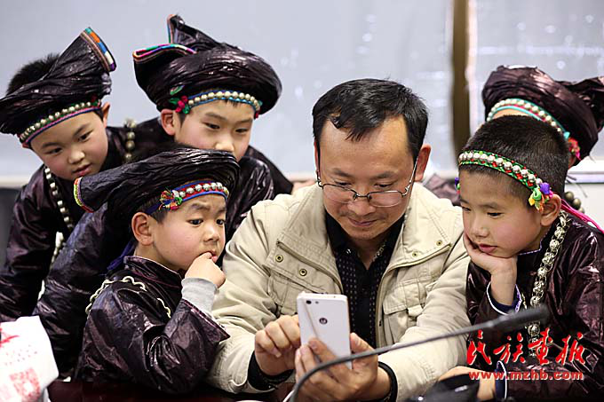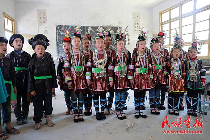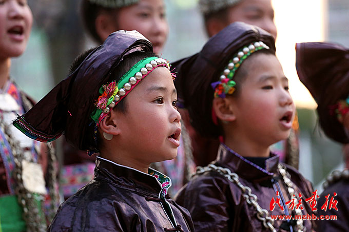 唱大歌的侗族娃。