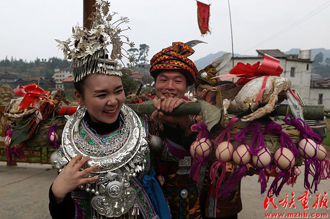 苗族姑娘韋夢迪說:“現(xiàn)在人們生活水平提高了,活動的內(nèi)容也越來越豐富?;顒蝇F(xiàn)場的姑娘若對小伙子有好感,跟過去情況也不一樣了,只要人好就行?!绷侄创迮嗫仆屠先撕喂疰灿幸粯拥母惺埽骸坝浀靡郧靶〉臅r候‘打同年’就是吹蘆笙、跳踩堂舞、對歌,現(xiàn)在‘打同年’活動越來越豐富,還增加了籃球賽、拔河比賽、聯(lián)歡晚會等很多節(jié)目?!泵磕旰倩丶叶家獏⒓印按蛲辍钡膹V西大學(xué)學(xué)生潘金鑫來自融水縣懷寶鎮(zhèn),他說:“通過開展吹蘆笙、踩堂舞、文藝表演等傳統(tǒng)文化活動,加深了大苗山黨群干群之間、村寨各族同胞之間的情誼,增進(jìn)了民族團(tuán)結(jié)。我自己也特別能感覺到家鄉(xiāng)的發(fā)展變化,這讓我很自豪?!?/p>
