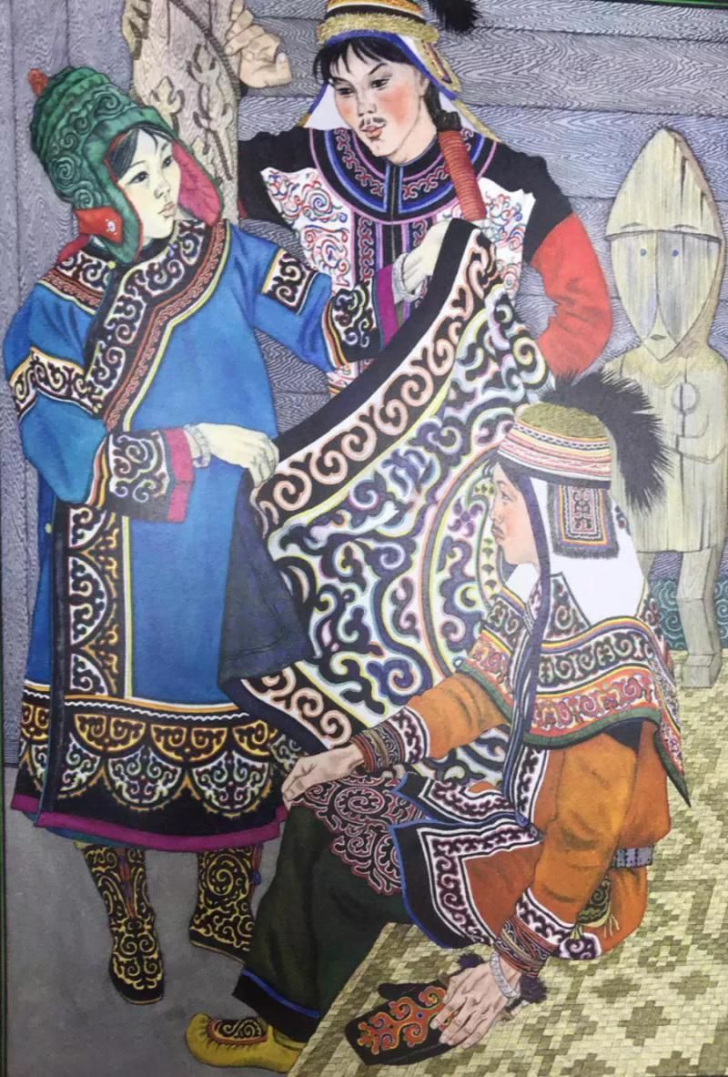 赫哲族和那乃族的婚服也稱“樹服”,樹服對(duì)赫哲族和那乃族的婦女有著非凡的意義,女子在結(jié)婚時(shí)穿一次,在生命結(jié)束時(shí)穿一次,因此有著“樹服一件托生死”的說法。