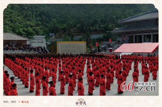 孔學堂背倚大將山,俯瞰花溪河,建筑面積12萬平方米。一期工程于2011年7月3日奠基,2012年9月28日即孔子誕辰2563周年紀念日落成揭幕;二期工程于2013年10月開工,將于2014年11月竣工。