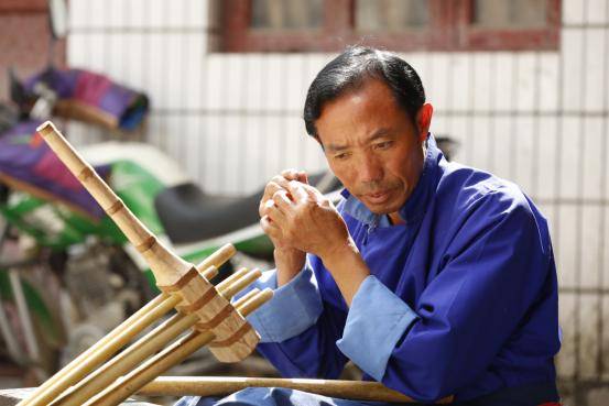 最難的是敲打簧片、割簧片、校單音、校和音這四個(gè)程序,最細(xì)致,最需要掌握的就是割簧片。把竹管的聲音和簧片的聲音全部調(diào)成一致,然后還要校正聲音。把單音校好以后還有雙管的,如果不把聲音校準(zhǔn),雙管就會(huì)和不起來(lái),吹起來(lái)也不好聽,就不能用。