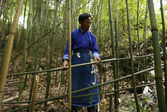 制作蘆笙大的工序有12道,再細(xì)一點(diǎn)有幾十項(xiàng)。如第一道是到山上去選竹子,拿尺子慢慢比劃,三拳的有多長(zhǎng),要很細(xì)心地選,確實(shí)可以用。取下來(lái)之后,第二道工序是拿到河邊去洗,用紗布搓。因?yàn)橹窆苡泻芏喟唿c(diǎn),關(guān)節(jié)處有很多毛,要很細(xì)致的把那些東西全搓掉。弄好之后用太陽(yáng)曬,曬干曬白。第三道工序,就是取杉樹的木頭做笙斗,計(jì)劃好做三拳的是多少公分,四拳是多少公分。十二道工序,后面越學(xué)越復(fù)雜,每一道工序都很講究。