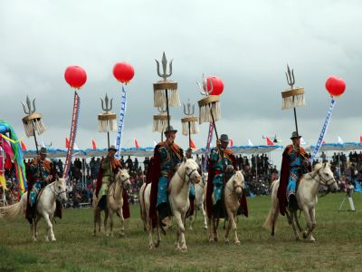 圖片說(shuō)明:蒙古族體育比賽馬隊(duì)進(jìn)場(chǎng)